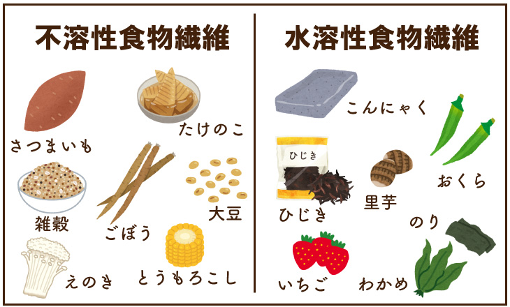 実は食物繊維には、種類があります。 便のカサを増やす「不溶性食物繊維」、便をやわらかくする「水溶性食物繊維」。