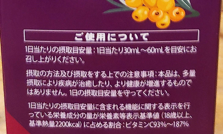 ちなみに、ハンズの有機サジージュース30ml~60mlで1日に必要なビタミンC摂取目安量の93%~187%を補うことができます。 しかも、天然原料(サジー)100%なので、安心してお召し上がりいただけます。